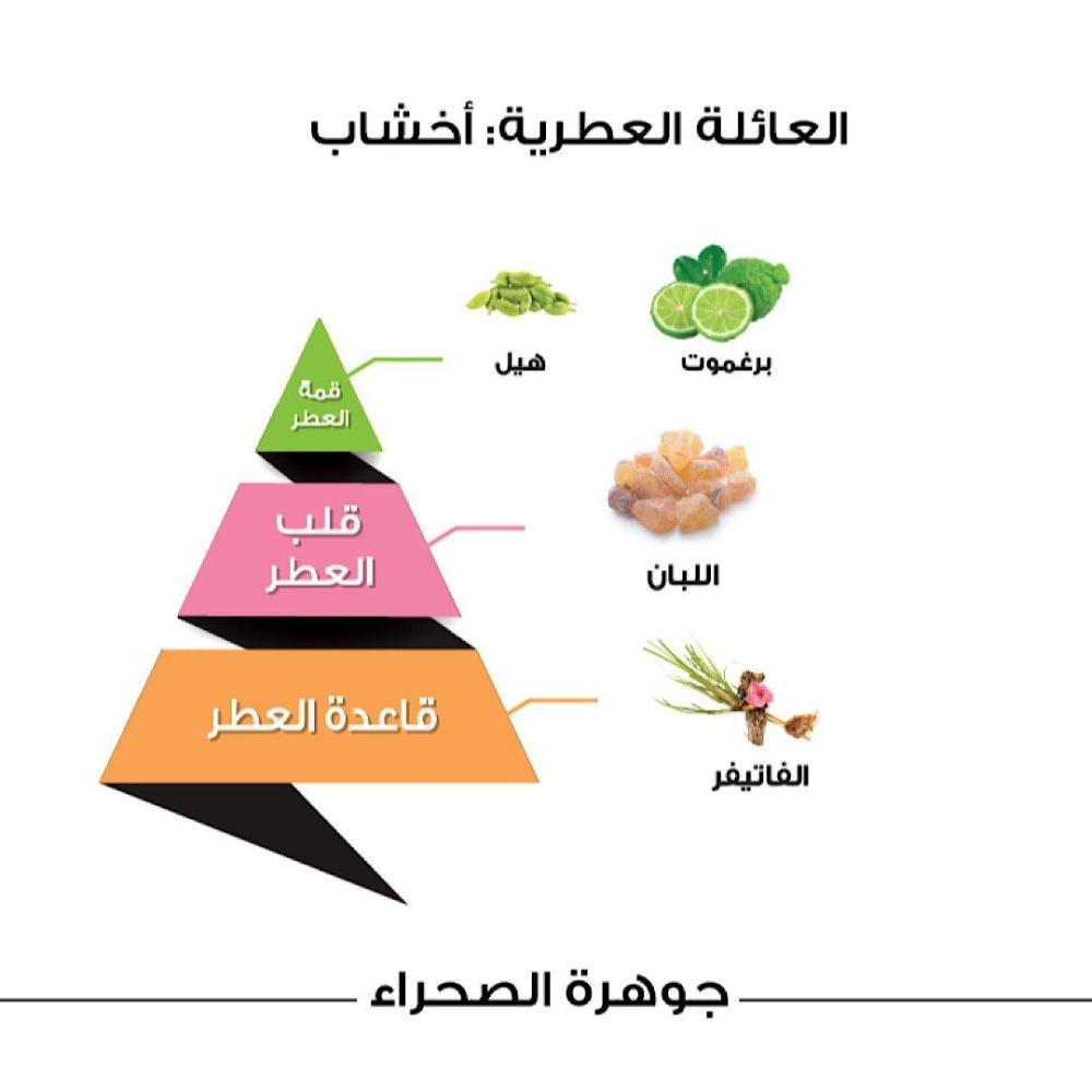 عطر جوهرة الصحراء يأخُذك إلى عراقة الصحراء بنكهة الهيل وانتعاش البرغموت منتقلاً بك لرائحة اللُبان الأخّاذة لتختتم توليفة عريقة ومُبتكرة ومميزة .